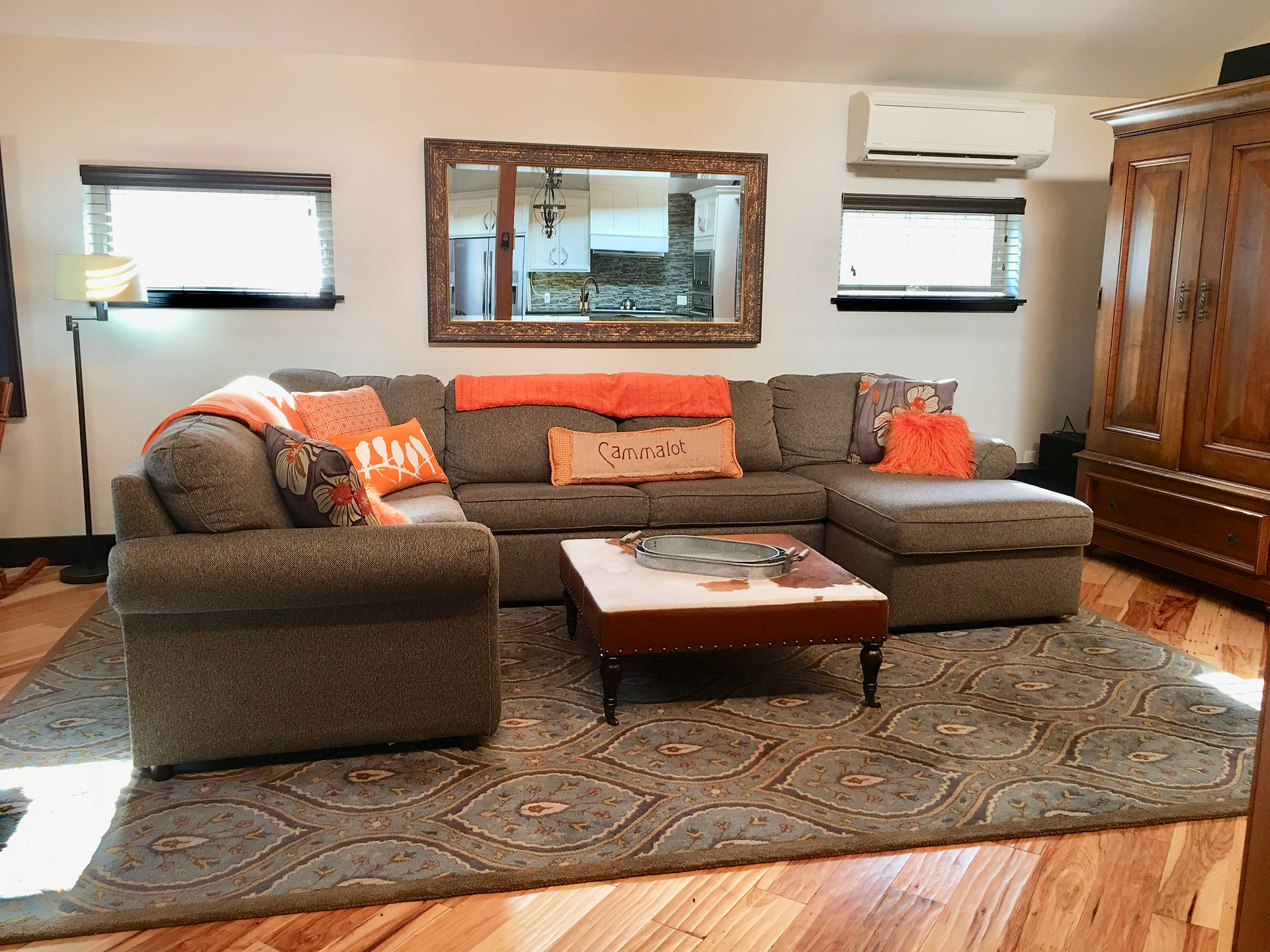 Cammalot comfortably SLEEPS 13 people. The two bedrooms, pullout sofa, loft and outdoor bunkie have mattresses for all. There is one SPACIOUS FULL BATHROOM and dressing area, plus, an OUTHOUSE that could probably win a contest as being the most charming ever.