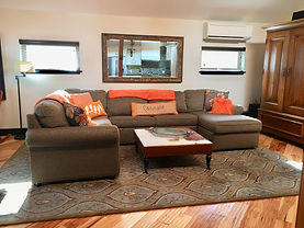 For more guests, the sectional unfolds into another bed for 2.
